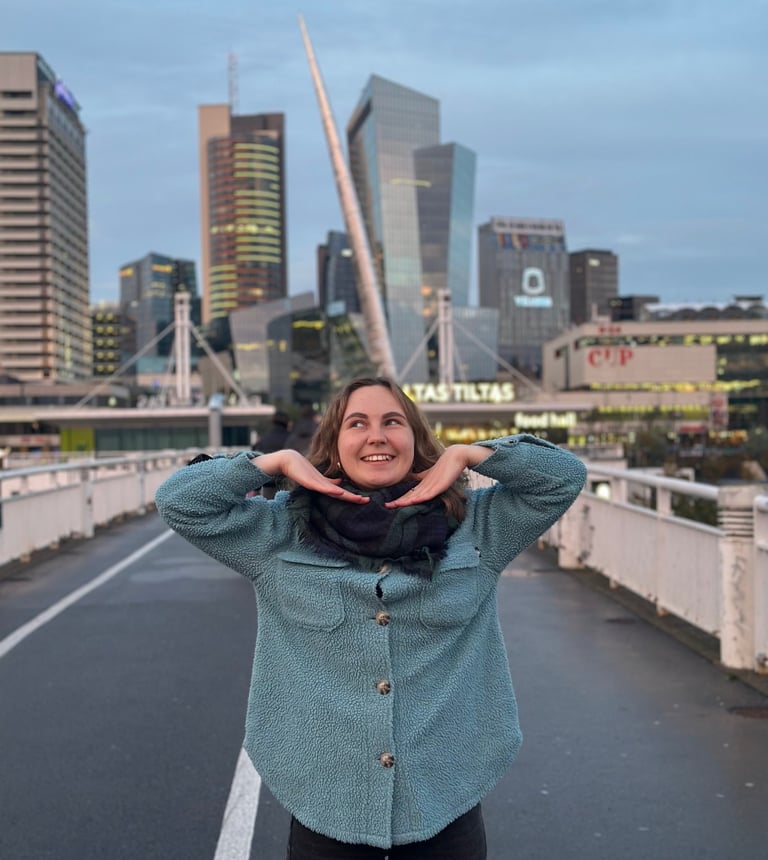 After finishing high school, Lukrecija wanted to get to know herself and the world, so she took a gap year. During that time, she worked as a nanny in Spain, volunteered on a horse farm in a small village in the middle of nowhere in Argentina, backpacked solo in South America, completed flight attendant training, and worked on an apple farm in Norway.